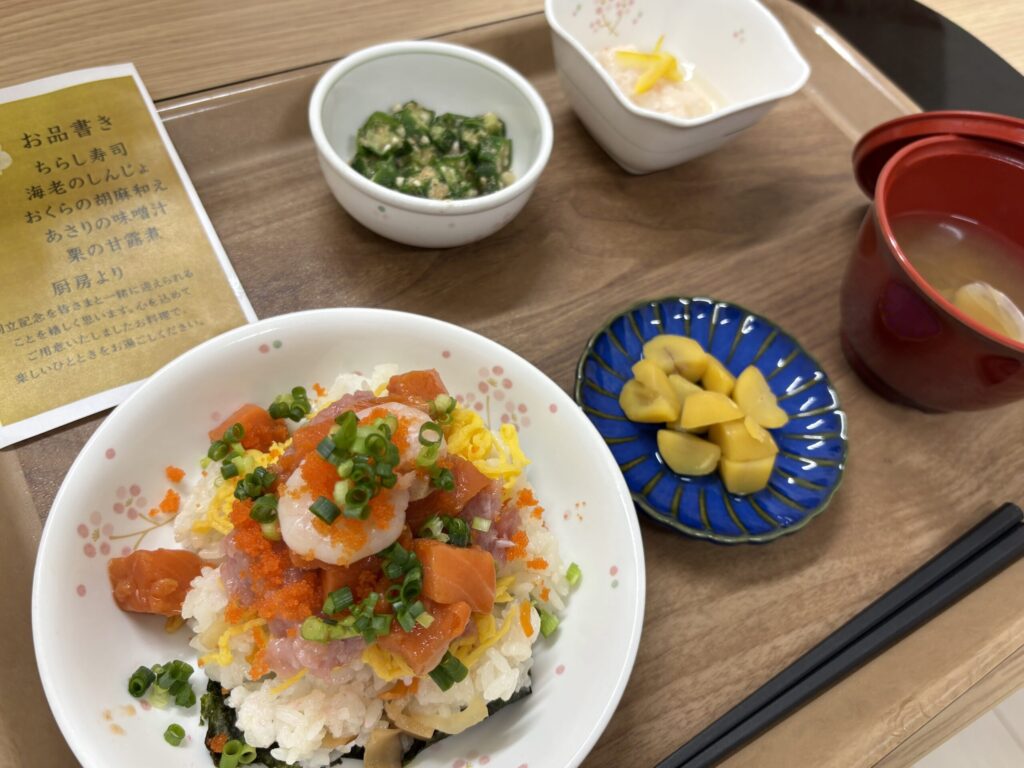 副菜には、おくらの胡麻和えや栗の甘露煮など、秋を感じられる料理を添えました。