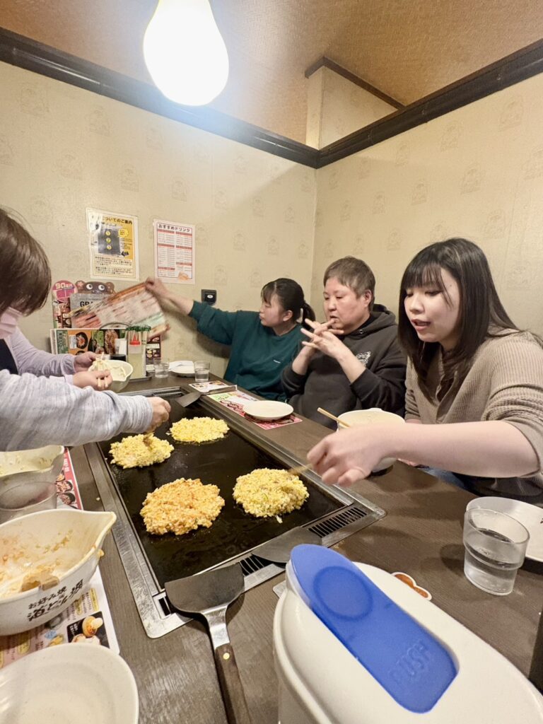 お好み焼きやもんじゃ焼き、焼きそばなどを皆で協力しながら焼き、普段の業務とはまた違った雰囲気の中で、和やかな時間を過ごすことができました。