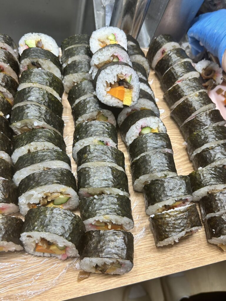厨房スタッフ総出で、一つひとつ丁寧に仕上げた巻き寿司は、きれいな断面に仕上がりました✨