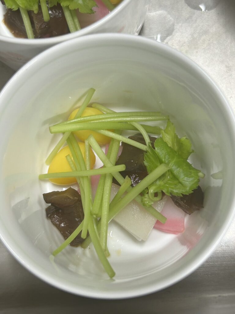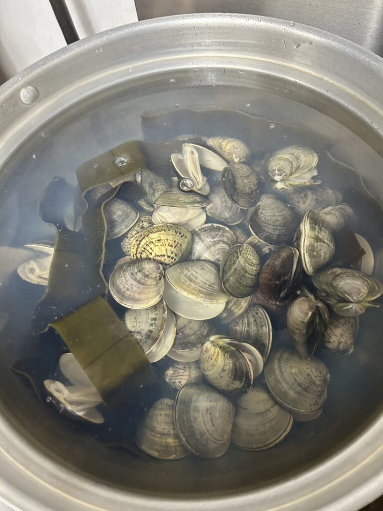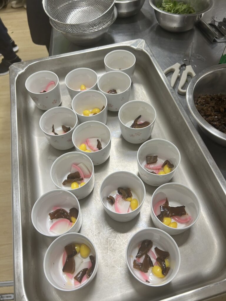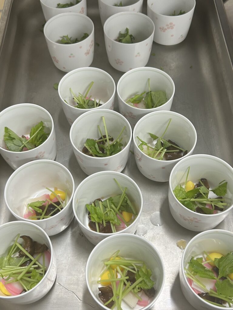 大きなはまぐりを使用し、香り豊かに仕上げたお吸い物は、ふたを開けると香りが広がり「わぁ〜」と歓声があがりました。